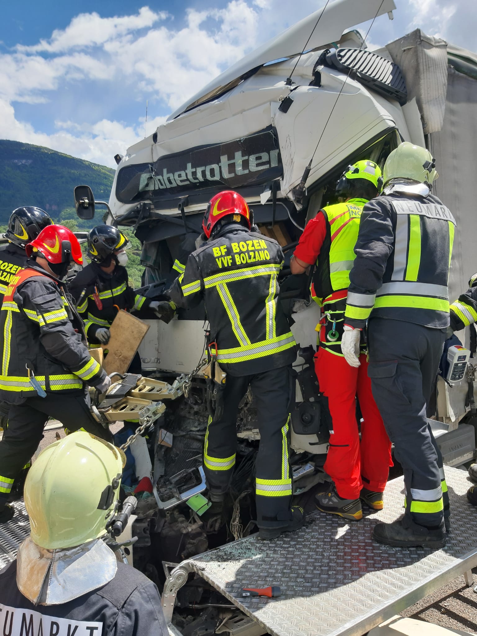 L’uomo è stato dapprima assistito dal personale di soccorso e poi trasportato all’ospedale. In intervento i Vigili del fuoco volontari della Bassa Atesina e il Corpo dei permanenti di Bolzano. Sul posto anche la Croce Bianca, l’elisoccorso provinciale Pelikan 1, la Polizia stradale e gli operatori della A22.
