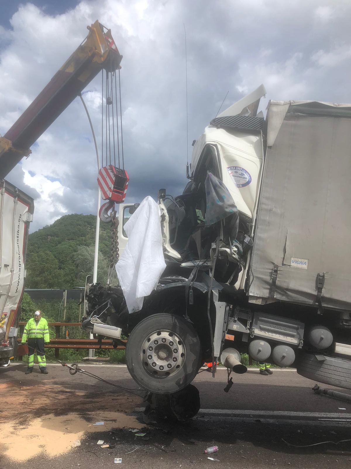 Maxi tamponamento tra tir in A22: ferito un camionista
