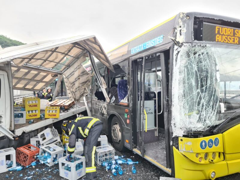 Il Corpo Permanente dei Vigili del Fuoco di Bolzano sono intervenuti per le operazioni di recupero e pulizia. Stando alle ultime informazioni, un bus di linea avrebbe tamponato un furgone che, a causa di un guasto, era rimasto bloccato sulla corsia di marcia.