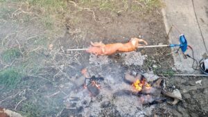 Si trattava di un falso allarme. Semplicemente, all’ora di pranzo, alcuni lavoratori si stavano per abboffare con un bel porco allo spiedo.