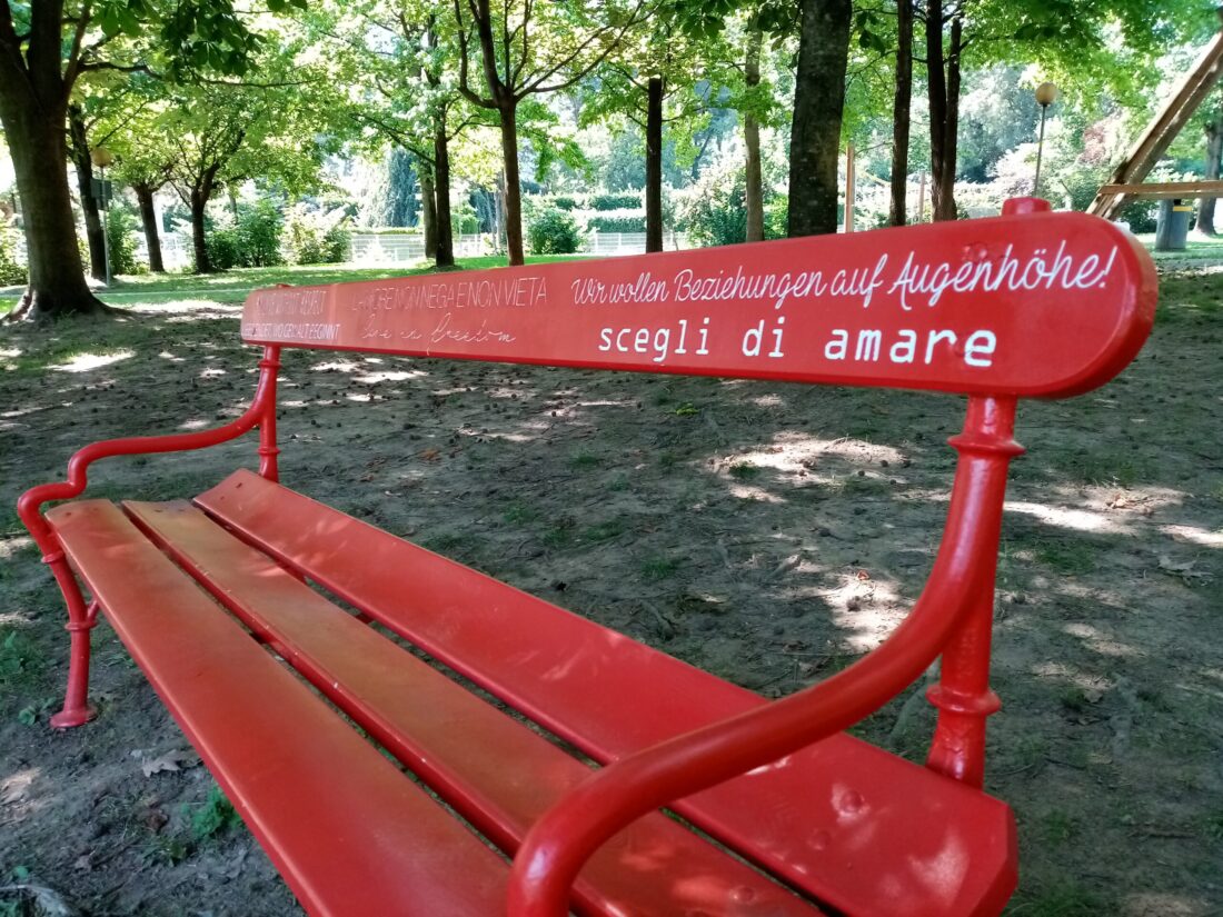Merano: la panchina rossa adesso è in Passeggiata