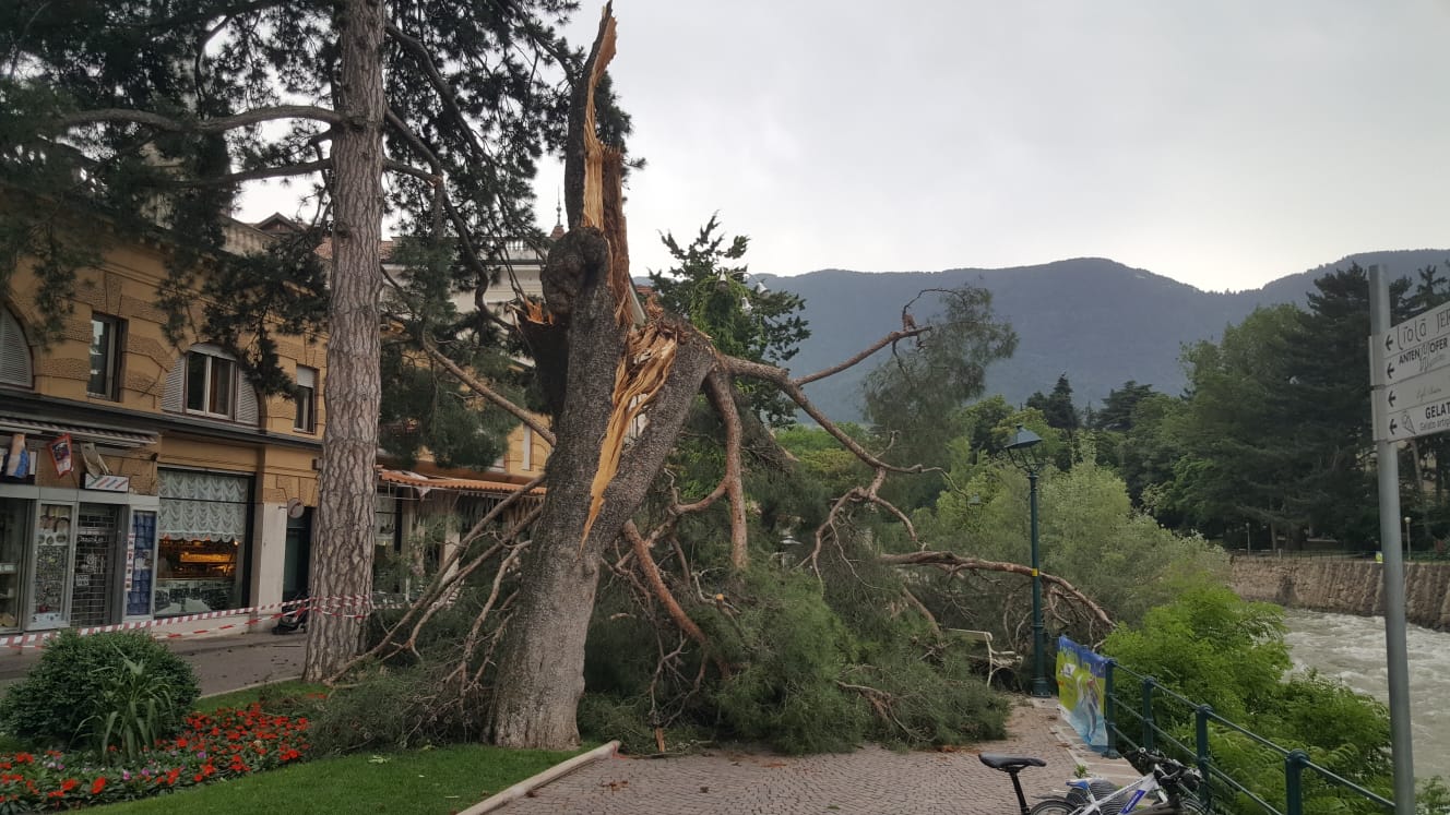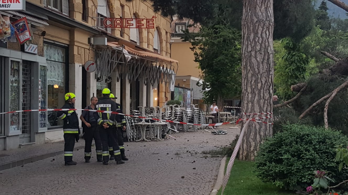 Pericoloso incidente nel tardo pomeriggio a Merano sulla passeggiata d’inverno dove un albero si è spezzato abbattendosi sui tavoli del caffè Darling.