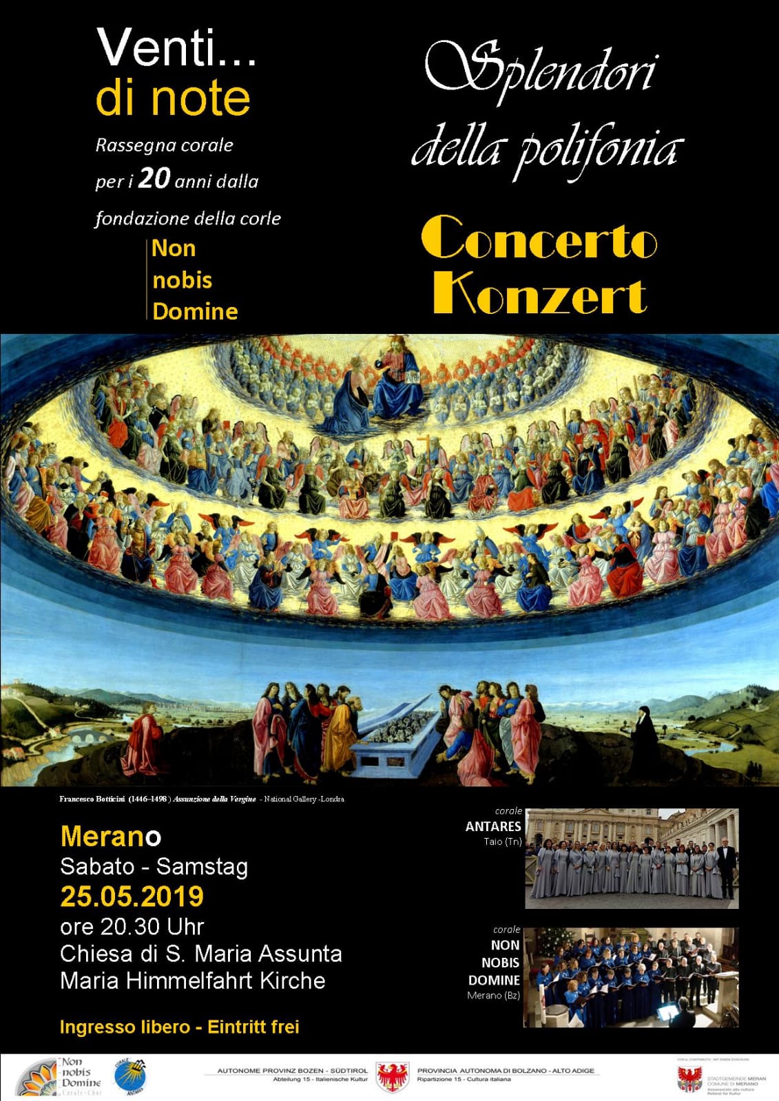 L’appuntamento è per questa sera alla chiesa di Santa Maria Assunta con “Venti di Note“, la rassegna per i 20 anni dalla fondazione della corale meranese “Non nobis Domine“.