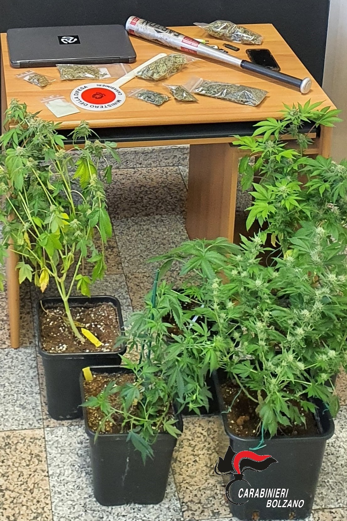 Minaccia i familiari con una mazza e gli trovano una coltivazione di canapa in casa: denunciato 33enne di Brunico
