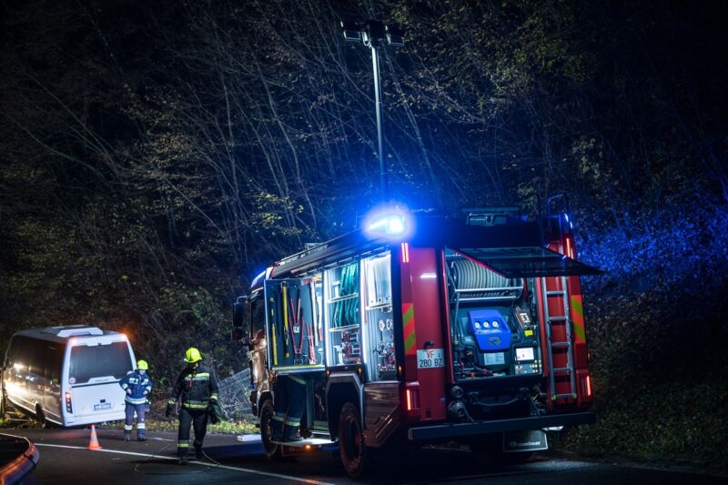 Nella prima mattinata di oggi, 3 dicembre verso le 6.00, i Vigili del Fuoco Volontari di Merano sono stati allertati per un incidente lungo la strada provinciale 98 nei dintorni di Labres, dove per cause ancora da chiarire, un minibus è uscito di strada, finendo bloccato a fianco della carreggiata