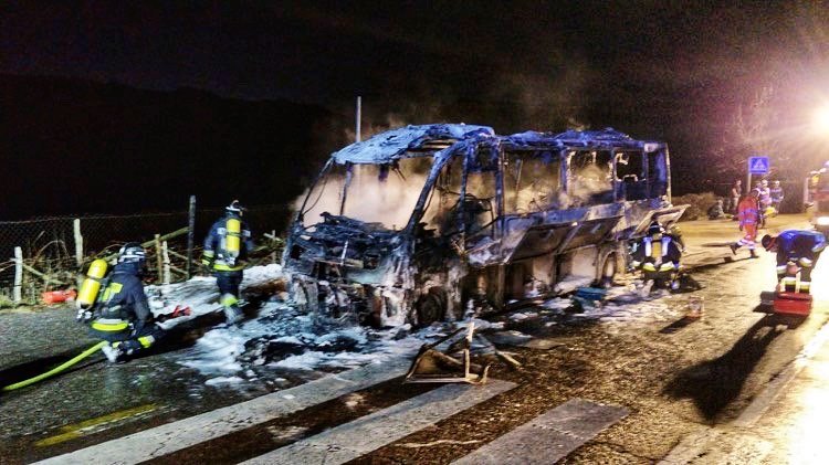 Minibus in fiamme a Caldaro, salvo l’autista