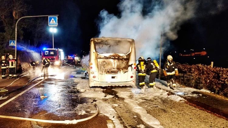 Minibus in fiamme (fortunatamente senza passeggeri a bordo) questa mattina poco prima delle sei a Caldaro, lungo la strada del Vino, all’altezza del ristorante Ritterhof.