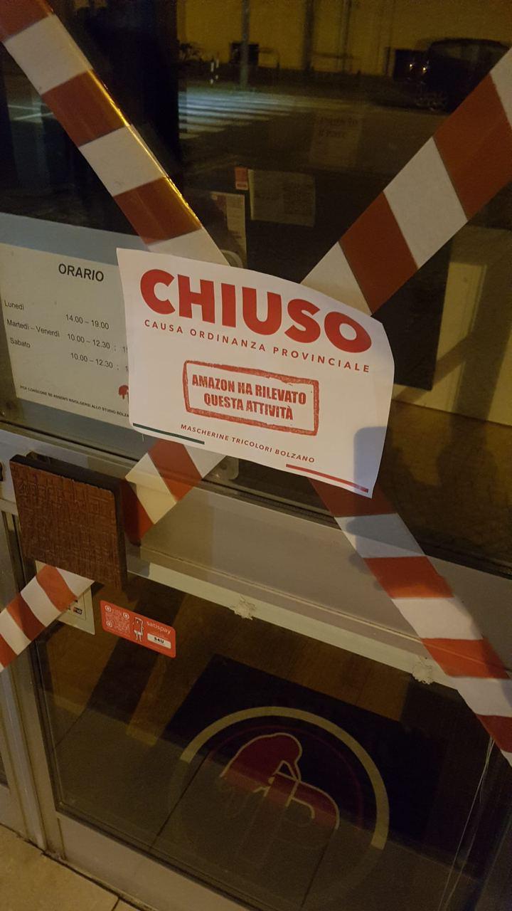 Questa mattina, in tutti i quartieri della città, decine di negozi che a causa delle ordinanze nazionali e provinciali sono obbligati alla chiusura, si sono visti l’entrata sbarrata dal nastro biancorosso ed un cartello recante la scritta “chiuso causa ordinanza provinciale, Amazon ha rilevato questa attività”.