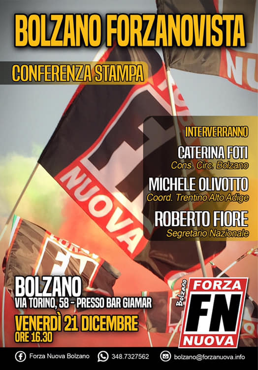 La conferenza si terrà presso il Bar Giamar di Via Torino a Bolzano alle 16:30.