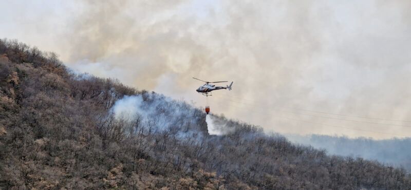 Incendio boschivo sul Monte di Mezzo: proseguono i difficili lavori di spegnimento con numerosi Vigili del Fuoco impegnati, anche con il supporto di un elicottero e il soccorso alpino.