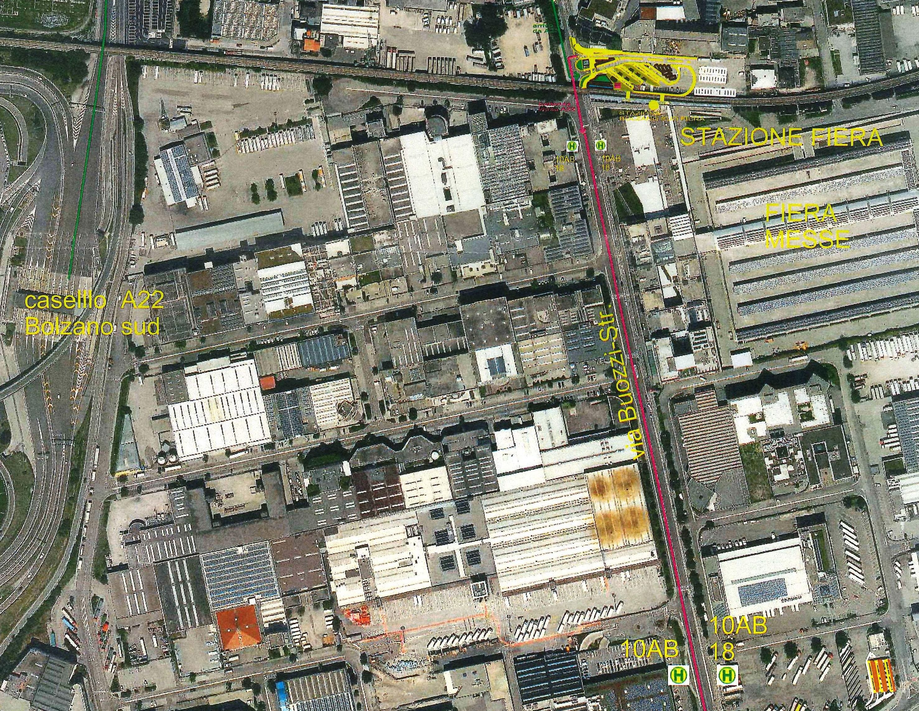 E’ stata pertanto scelta quest’area in zona produttiva che permette una realizzazione della nuova fermata in tempi brevi, facilmente raggiungibile dal casello Bolzano sud, compatibile anche con il futuro potenziamento del trasporto pubblico lungo via Buozzi nell’ambito della riorganizzazione della viabilità complessiva di Bolzano sud.
