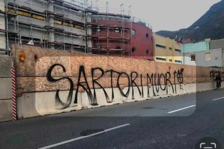 L’inquietante scritta “Sartori muori” sulla parete a copertura di un cantiere in via Duca d’Aosta non lascia spazio ad altre interpretazioni. Se non all’ennesima “minaccia” rivolta ai danni del questore Paolo Sartori da quando si è insediato a Bolzano, lo scorso marzo.