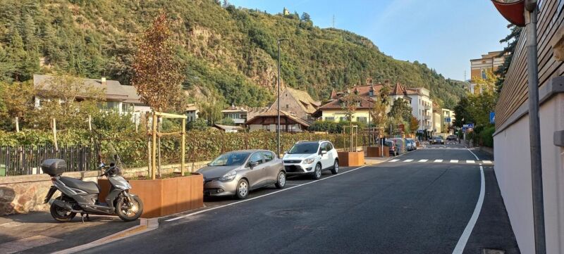 Il Piano del Verde della Città di Bolzano detta indicazioni per contrastare gli effetti del cambiamento climatico ovvero favorire per esempio lo smaltimento delle acquee meteoriche e mitigare le isole di calore. Si rende quindi sempre più necessario de-sigillare le superfici e piantare nuovi alberi. Per questo motivo nel Piano del Verde in via Fago è stato previsto un nuovo asse verde.  In occasione dei lavori realizzati dall’ Ufficio comunale Infrastrutture che prevedevano il rinnovo delle pavimentazioni, sono state piantate 6 nuove alberature. A causa della presenza di sottoservizi è stato necessario piantumarle in vasche/fioriere aperte in corten fuori terra di circa 80 cm di altezza. Una settima vasca/fioriera verrà installata non appena definiti e conclusi i lavori previsti nel progetto dell’ Ufficio Infrastrutture.