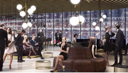 Il primo progetto dello studio americano Populous (portfolio di 1325 stadi in 34 Paesi, fra cui quello del Tottenham) che prevede una struttura che ricorda un parallelepipedo di cristallo interrato, ricoperta di vetro.
