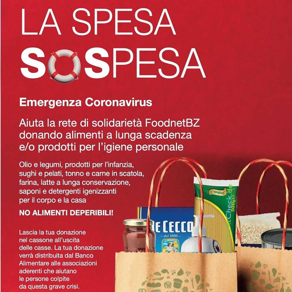 La SPESA SOLIDALE anche da Noi!!! A Bolzano c’è FoodnetBZ, la rete di solidarietà alla quale aderiscono una serie di esercizi commerciali e supermercati che permettono di lasciare la spesa pagata per tutti coloro che si trovano in stato di necessità.