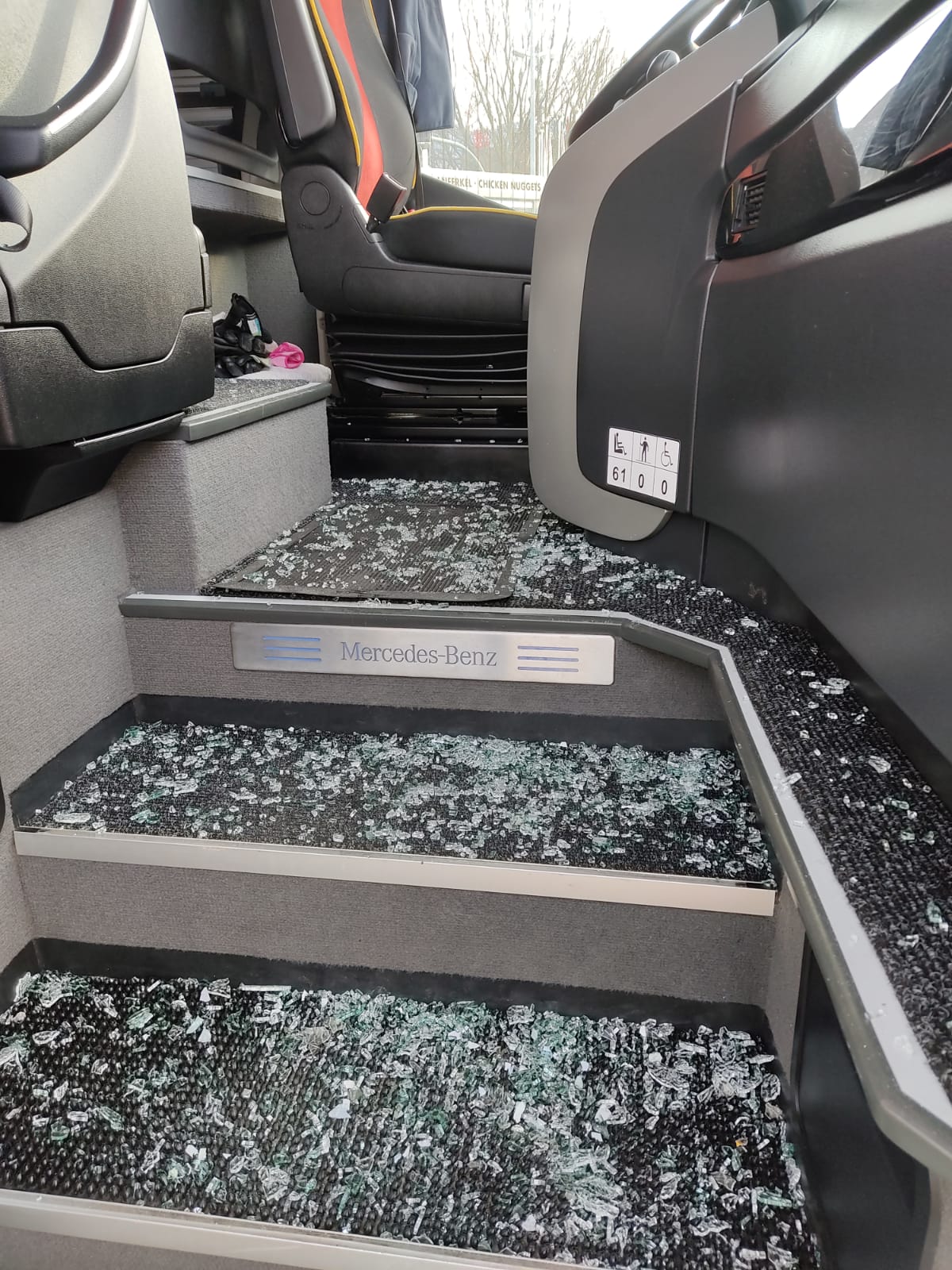 Questo pomeriggio la squadra femminile di Hockey delle Eagles ha giocato al Palaonda contro la polacca Katowice e tra il terzo tempo della partita e i supplementari è stato sfondato il bus della squadra in trasferta con un sasso.