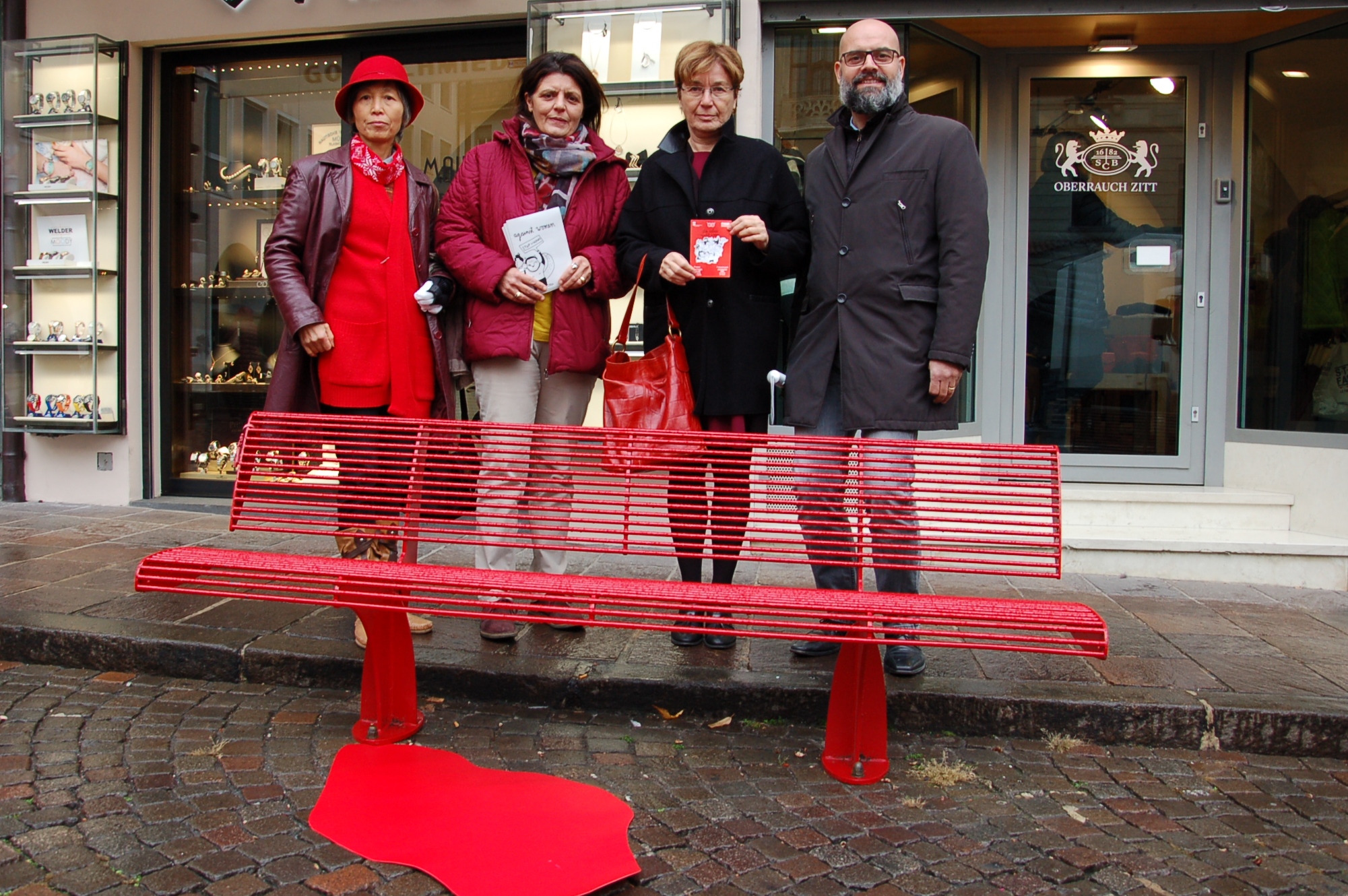 Per questo la facciata del municipio verrà illuminata di rosso per 15 giorni e un’ombra rossa sotto la Panchina rappresenterà la violenza subita.