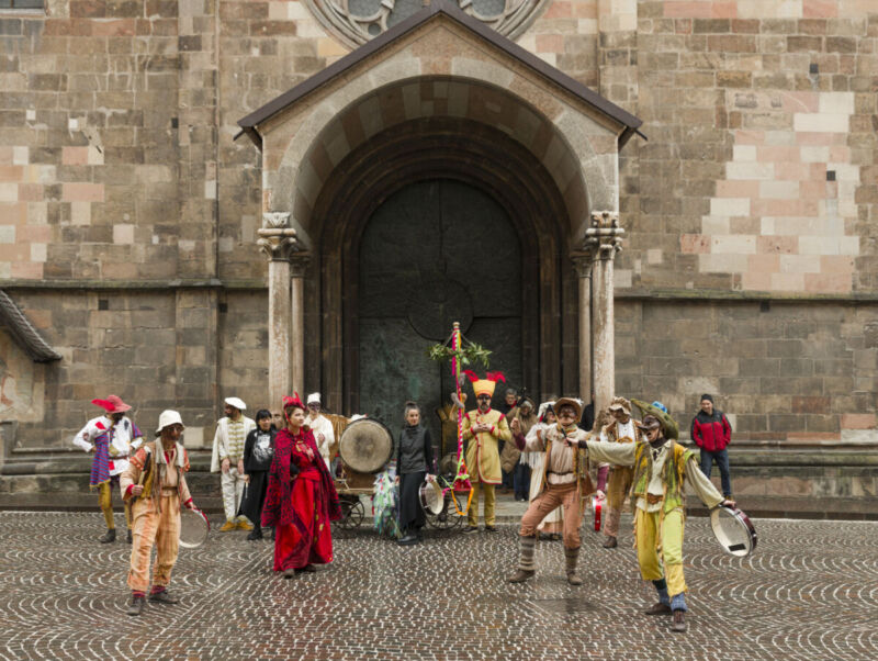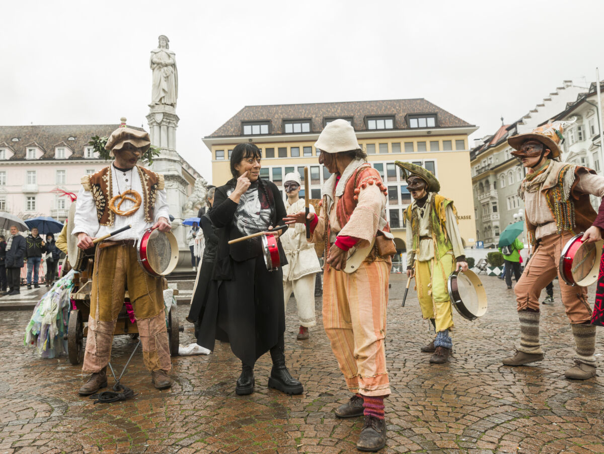 Ad accompagnare il pubblico in quest’immersione nel Carnevale sono stati gli artisti della Compagnia Caraval: Chiara Albertini, Arianna Bellinaso, Maddalena Gattoni, Nicola Pignoli, Aurora Rossini, Vera Rossini, Ivan Salandin, Francesco Trunfio e Marco Uggè, pronti a trascinare bolzanini e turisti nel ritmo della festa.