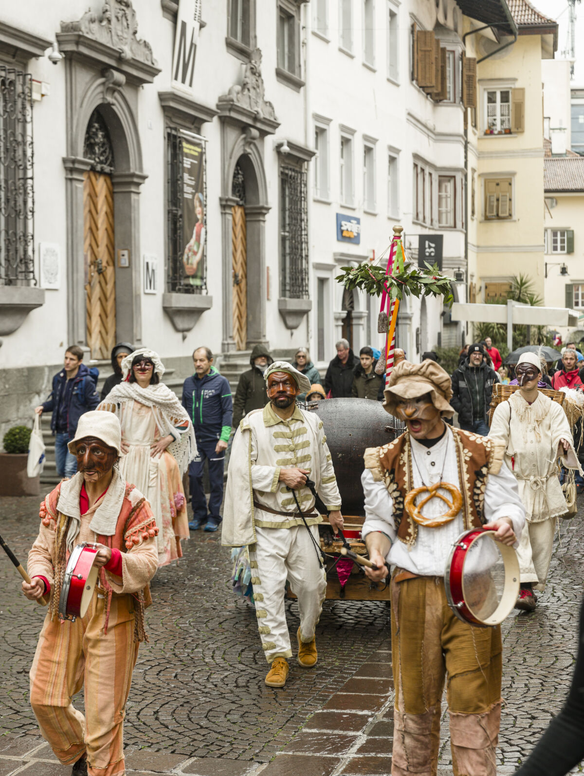 Guidata da Brattarello, maschera simbolo di Bolzano, la sfilata si è snodata lungo Piazza Verdi, via Isarco, Piazza Walther, Piazza del Grano, Piazza Municipio, via Portici, Piazza delle Erbe e via Museo, trasformando il centro in un teatro a cielo aperto.