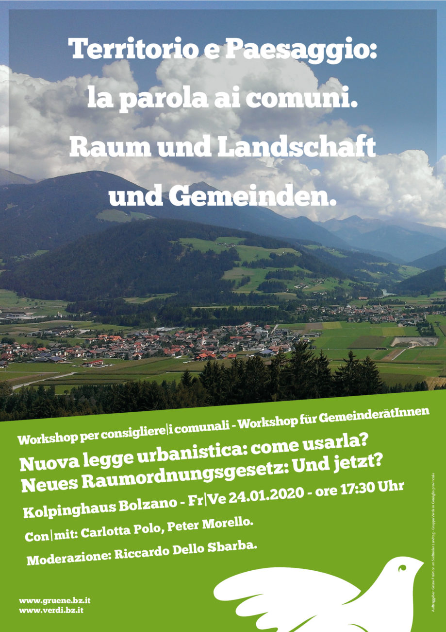 Così il Gruppo Verde in Consiglio provinciale, che organizza un incontro venerdì 24 gennaio alle ore 17:30 presso la Casa Kolping a Bolzano sulla nuova legge e su cosa questa comporterà per le amministrazioni comunali una volta entrata in vigore: pro, contro, potenzialità, pericoli e trappole.