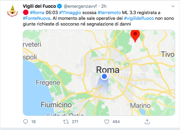 Proprio all’altezza dell’uscita 11 del Raccordo anulare, con profondità di 10 km, le onde sismiche si sono propagate dal centro storico, alla zona sud e fino ai Castelli Romani raggiungendo anche i centri più vicini come Mentana, Monterotondo, Tivoli e Guidonia.