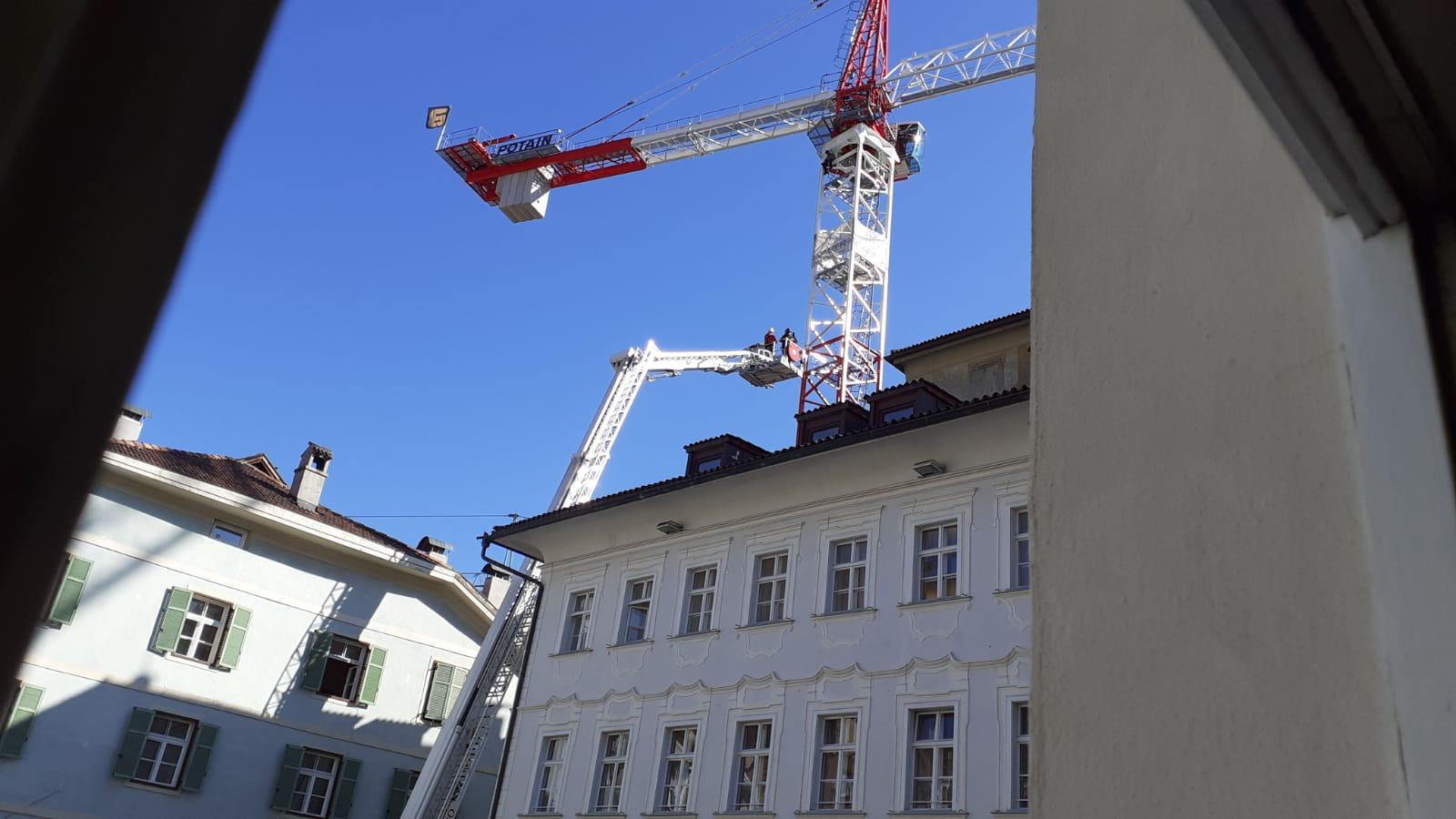 Paura in centro a Bolzano: un uomo si arrampica in cima a una gru. In azione i soccorsi