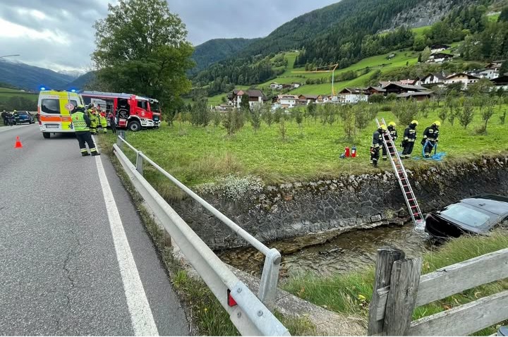 Un’auto, con a bordo due turisti, è uscita di strada concludendo la corsa nel sottostante torrente Frankbach. Le cause sono da accertare, ma da un’attuale ricostruzione il veicolo avrebbe sbandato all’improvviso.