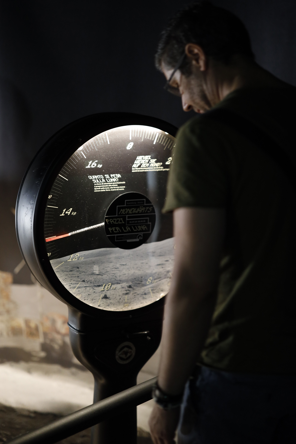 Per inciso, la ruota è composta di corde di pianoforte intrecciate, per sovvenire alle particolari condizioni di temperatura, gravità e pressione. Sulla Luna il nostro peso di riduce a un sesto, e per spiegarlo il percorso offre una bilancia tarata che si può provare in prima persona.