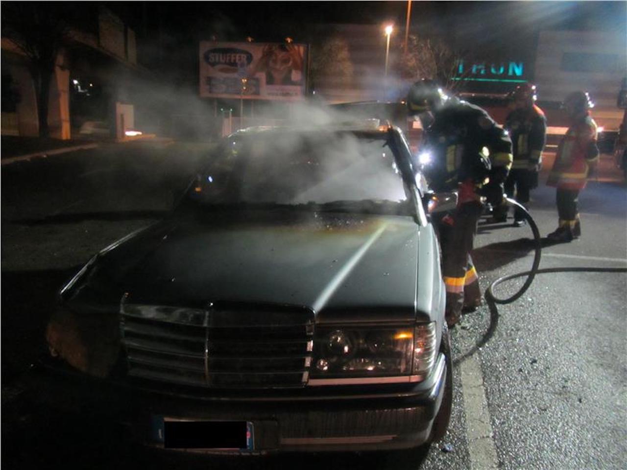 Pericolo incendio nella notte, Mercedes in fiamme in via Galvani