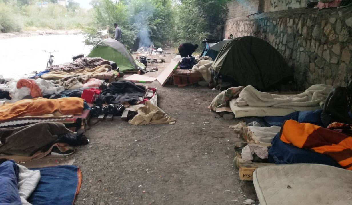 L’area del ripiano che si trova sotto il ponte, utilizzata come insediamento da una ventina di persone, è stata infatti resa inagibile tramite il deposito di sassi con una ruspa.