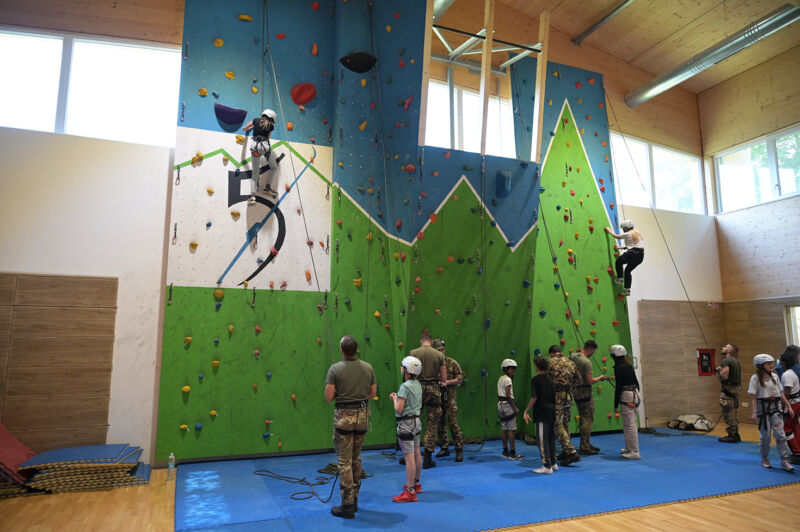 Inoltre gli istruttori militari di alpinismo e gli insegnanti di metodo di combattimento militare appartenenti al 5° Reggimento Alpini hanno intrattenuto i visitatori all’interno della nuova palestra della infrastruttura, permettendo agli studenti di cimentarsi con la parete indoor di arrampicata, e effettuando alcune dimostrazioni pratiche di combattimento militare corpo a corpo.