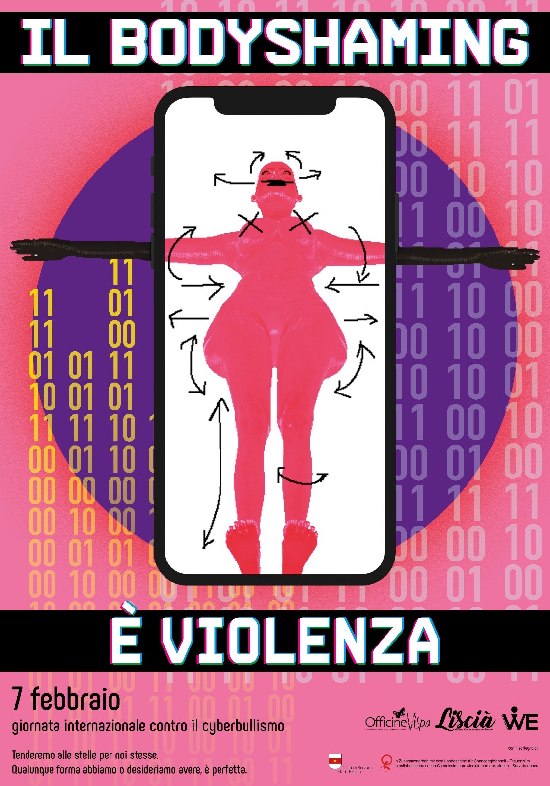 In occasione della Giornata contro il cyber bullismo l’Assessorato alle Pari opportunità ha condiviso con importanti partner di lavoro, il gruppo “Liscià. Donne che raccontano donne” della più ampia rete WE_Women Empowerment di piazza Parrocchia e con il Centro Pace, la necessità di realizzare una campagna di sensibilizzazione sul tema del “body shaming”, una forma di violenza psicologica, in particolare con bersaglio ragazze e donne, esercitata attraverso i social media.