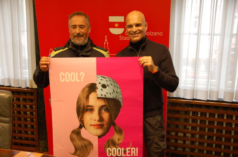 La campagna di sensibilizzazione voluta dal Comune di Bolzano del costo di 18.000 euro complessivi, partirà il 6 novembre ed è stata creata incaricando la società “Succus” esperta del settore. In dettaglio su uno sfondo dai colori vivaci vengono mostrati tre testimonial che rappresentano i diversi gruppi a cui la campagna si rivolge. La stessa persona viene mostrata una volta senza e una volta con il casco. Il messaggio che ci sta dietro è molto chiaro: Cool-Cooler. Di tendenza? Sì, ma chi indossa il casco lo è ancora di più!