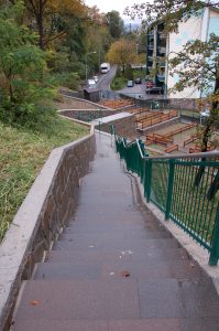 E’ stata inoltre realizzata una nuova scala di collegamento, inizialmente non prevista e richiesta dal Consiglio di Quartiere, che dalla Passeggiata dei Castani in corrispondenza degli edifici di proprietà comunale, conduce agli orti ed a via Castel Weinegg.