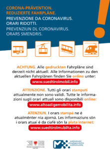 Prevenzione da Coronavirus. Mobilità Merano, orari ridotti