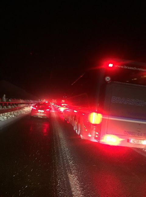 Nelle immagini, inviate dalle automobiliste bloccate in autostrada, l’attuale situazione del traffico nel tratto immediatamente precedente il confine tra Austria e Italia.