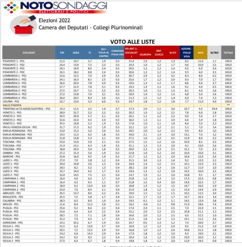 Il Trentino Alto Adige quindi sarebbe una delle regioni più incerte per quanto riguarda i voti di lista. Da segnalare il sorpasso del partito della Meloni alla Lega che nel 2018 aveva dominato nei consensi sia a livello nazionale che provinciale (24%).