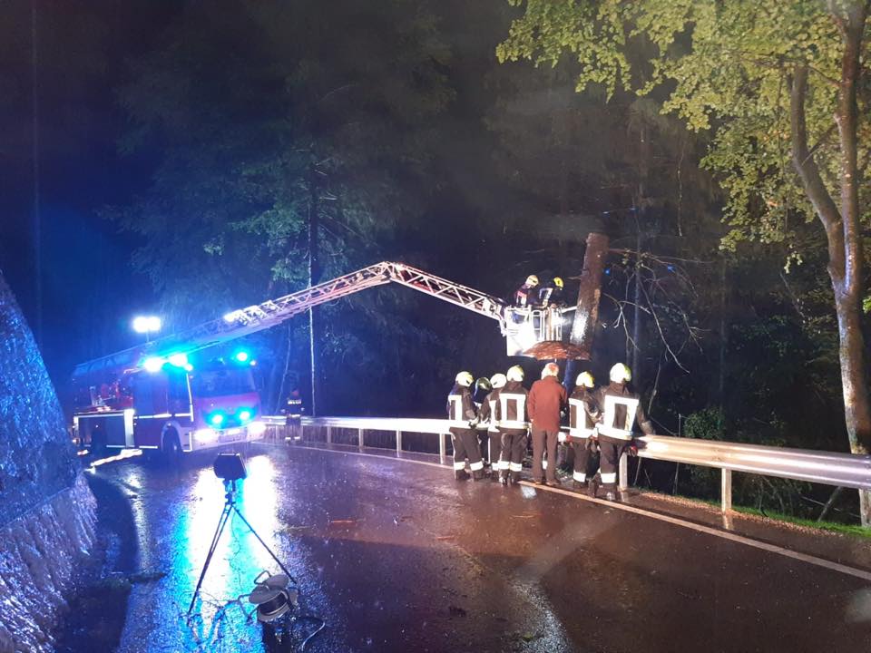 Dopo aver eliminato un albero abbattuto, una struttura di recinzione e un tubo di scarico, i pompieri altoatesini sono intervenuti anche a Salorno per il sostegno di una scala.