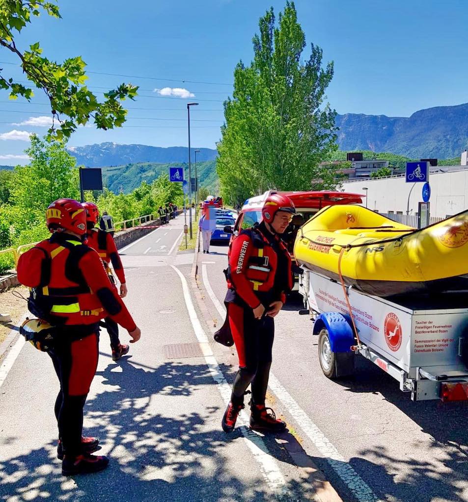 Sul posto i vigili del fuoco permanenti di Bolzano, gruppo sommozzatori dei vigili del fuoco volontari di Bolzano, gli agenti della Questura e la polizia municipale in supporto.