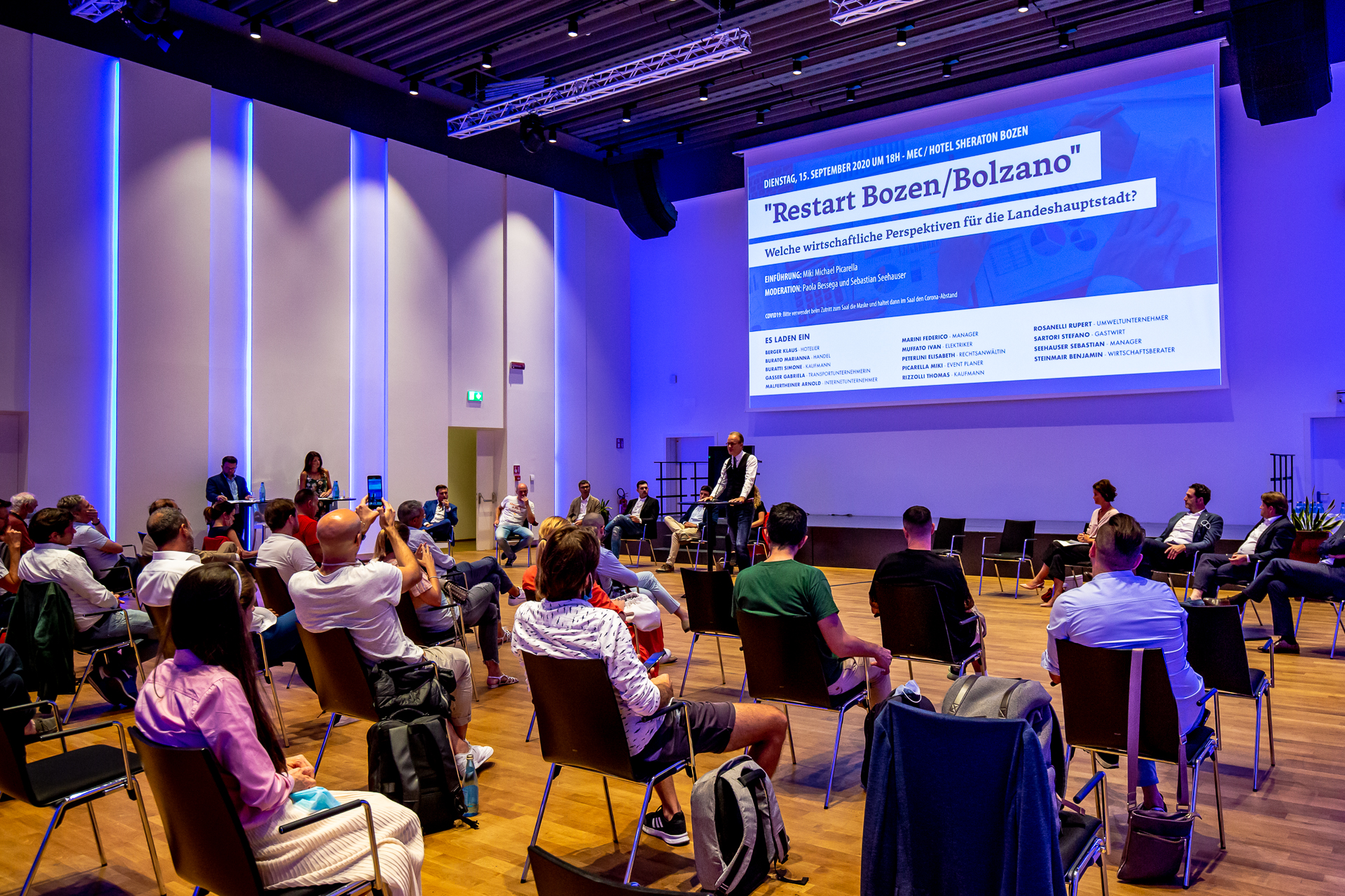 Ieri sera (15 settembre) presso lo Sheraton di Bolzano si è svolta una tavola rotonda sull’economia del Capoluogo intitolata “Restart Bolzano“. L’evento si è posto la domanda su quali siano le prospettive economiche di Bolzano come città capoluogo. Su iniziativa dell’organizzatore di eventi  Michael Miki Picarella, 12 imprenditori di tutte le categorie hanno partecipato al palco.