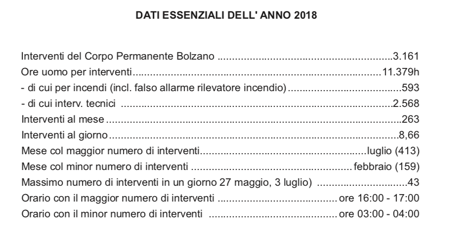 La raccolta delle statistiche relative al 2018 sull’attività del Corpo Permanente dei Vigili del fuoco di Bolzano: 6991_Presse_statistik_2018
