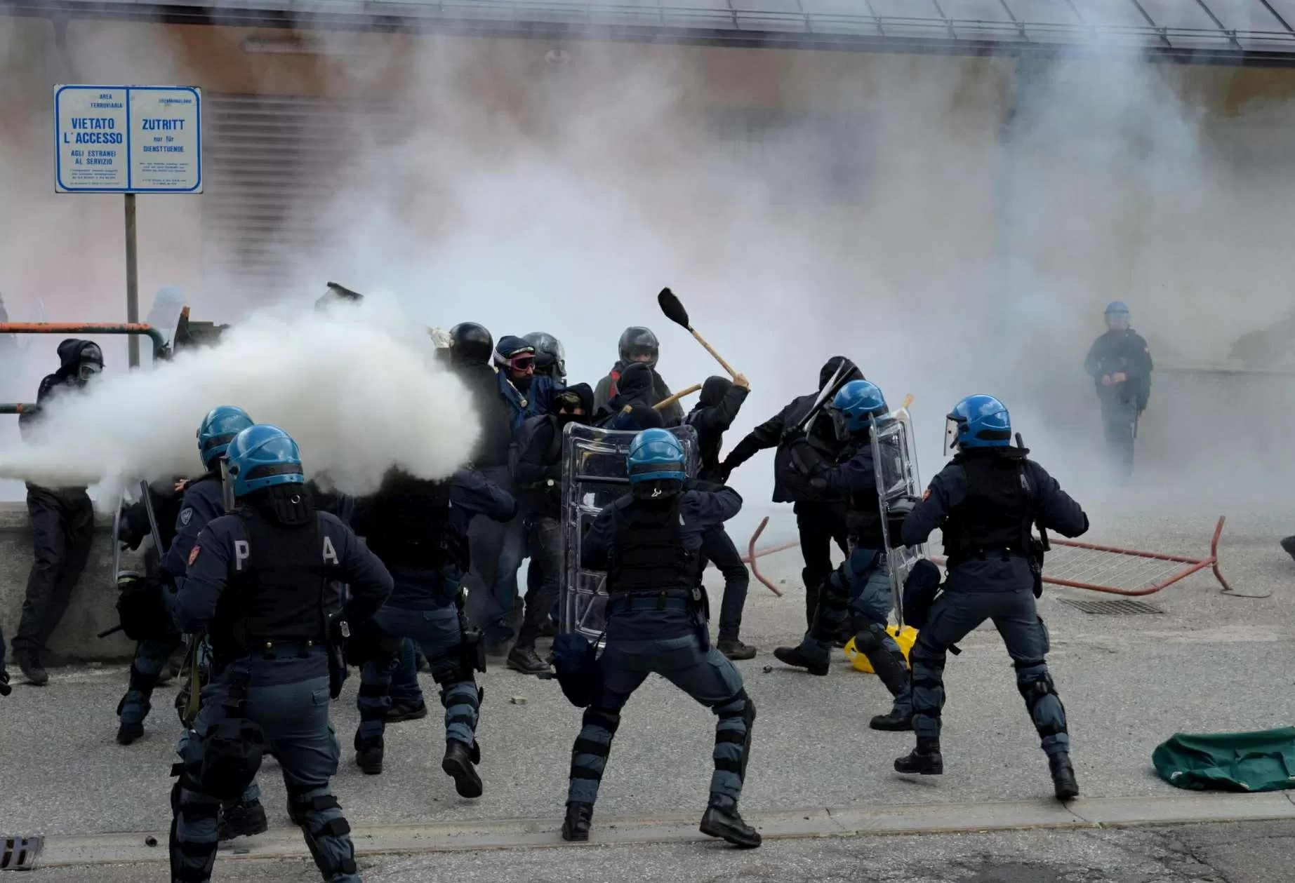 I dimostranti si erano dapprima scagliati contro i giornalisti ed i fotografi, poi contro le forze dell’ordine lanciando bengala e altri oggetti. La polizia aveva risposto con i lacrimogeni e gli idranti. Ad un certo punto un gruppo di manifestanti aveva anche abbattuto una recinzione, invadendo e bloccando la sede ferroviaria e, contemporaneamente, lanciando grossi sassi ed altri oggetti, contro le forze dell’ordine.