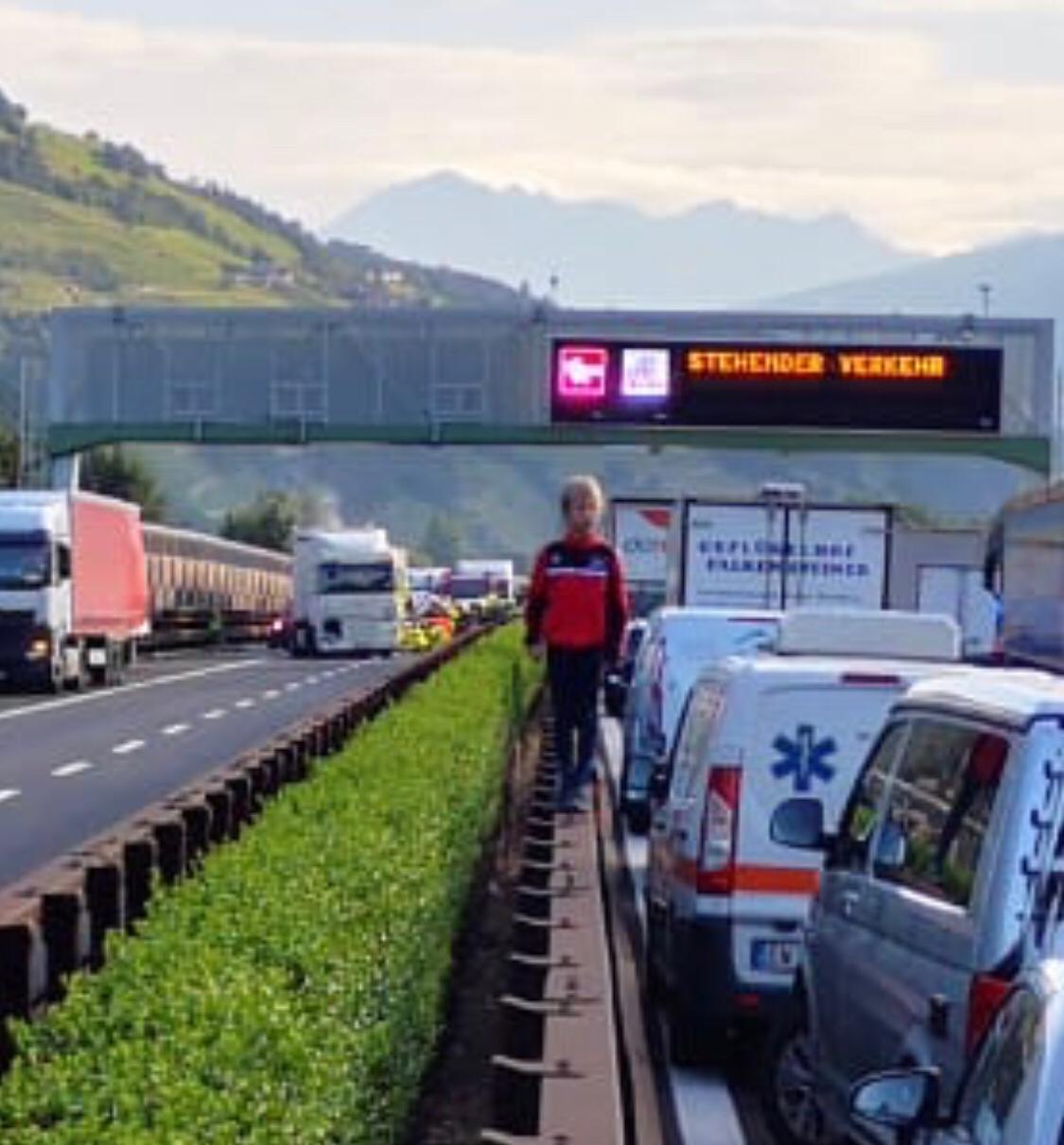 Scontro A22: riaperte le corsie ma traffico rallentato. Bimbo annoiato “passeggia” sul guardrail
