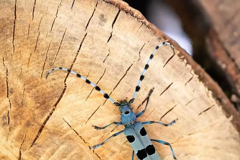 La recente scoperta sembra far ben sperare per il futuro della biodiversità locale. Questo per far presente che il cerambice alpino (Rosalia alpina) nel cuore del bosco di Castelvecchio, a Caldaro, ha trovato l’habitat ideale.