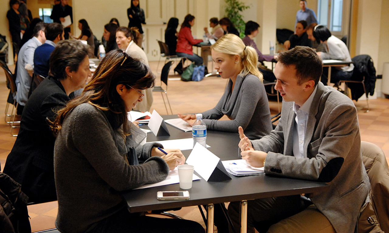 Dopo cinque minuti di conversazione il candidato riceverà un feedback dal rappresentante aziendale e poi passerà al tavolo dell’azienda successiva.