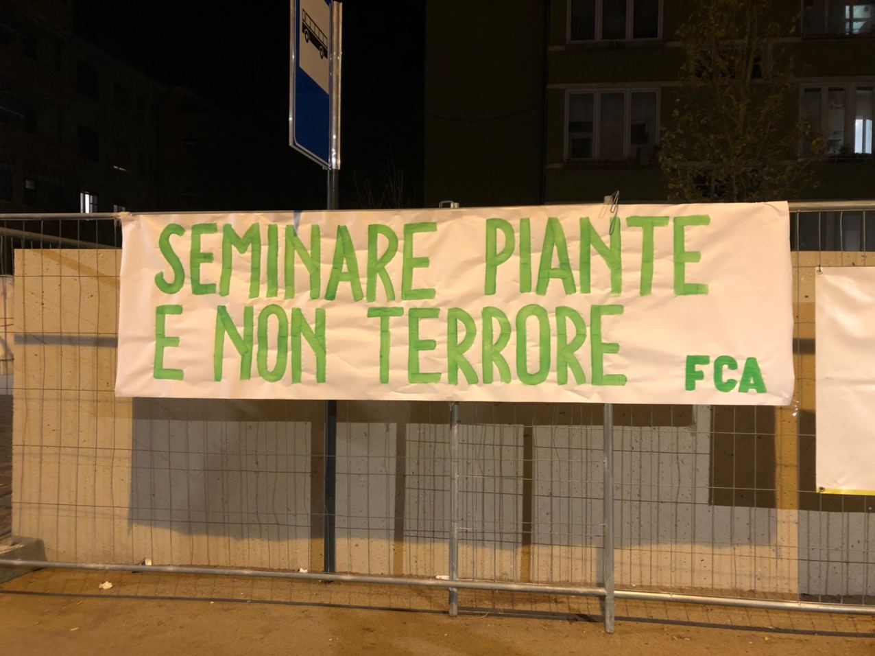 Nonostante il particolare momento per l’Italia, costretta a un nuovo lockdown, gli attivisti della FCA hanno voluto “ricordare agli esponenti dell’Intellighenzia nostrana che è estremamente controproducente fiaccare l’animo degli italiani seminando paura e attuando terrorismo psicologico nei loro confronti, affiggendo in contemporanea uno striscione che recita: “Seminare piante e non terrore”.