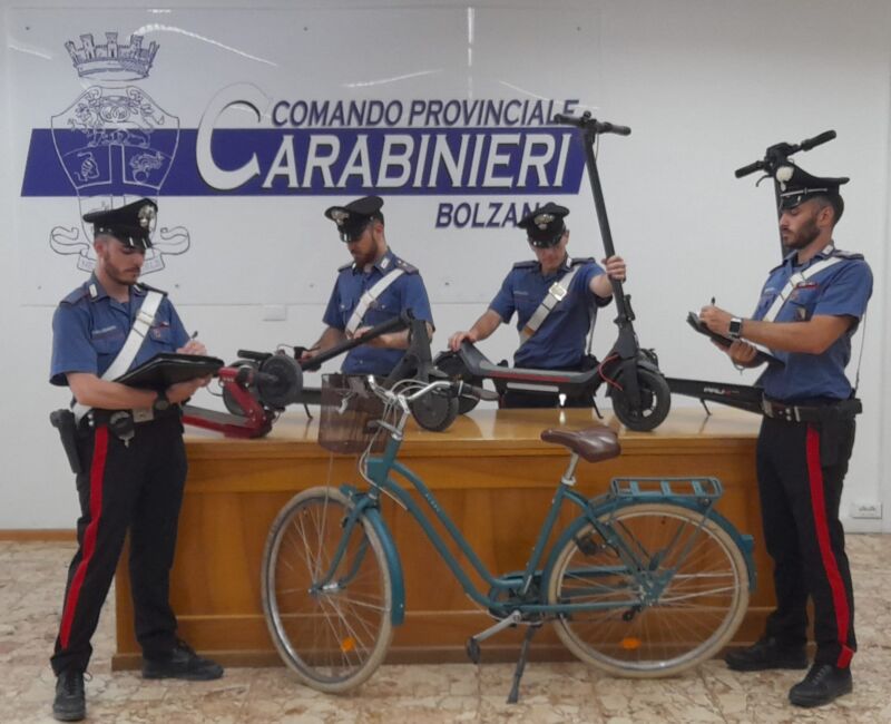 Nella mattinata dello scorso 6 agosto, durante un servizio perlustrativo automontato, i militari della Stazione Carabinieri di Bolzano hanno eseguito un controllo sotto il Ponte Roma, scoprendo un luogo destinato a celare oggetti verosimilmente rubati. Fra le persone presenti, sul posto è stato individuato un soggetto noto alle Forze dell’Ordine, il quale è stato trovato in possesso di una bicicletta da donna. A domanda specifica, l’uomo non è stato in grado di spiegare la provenienza della stessa.