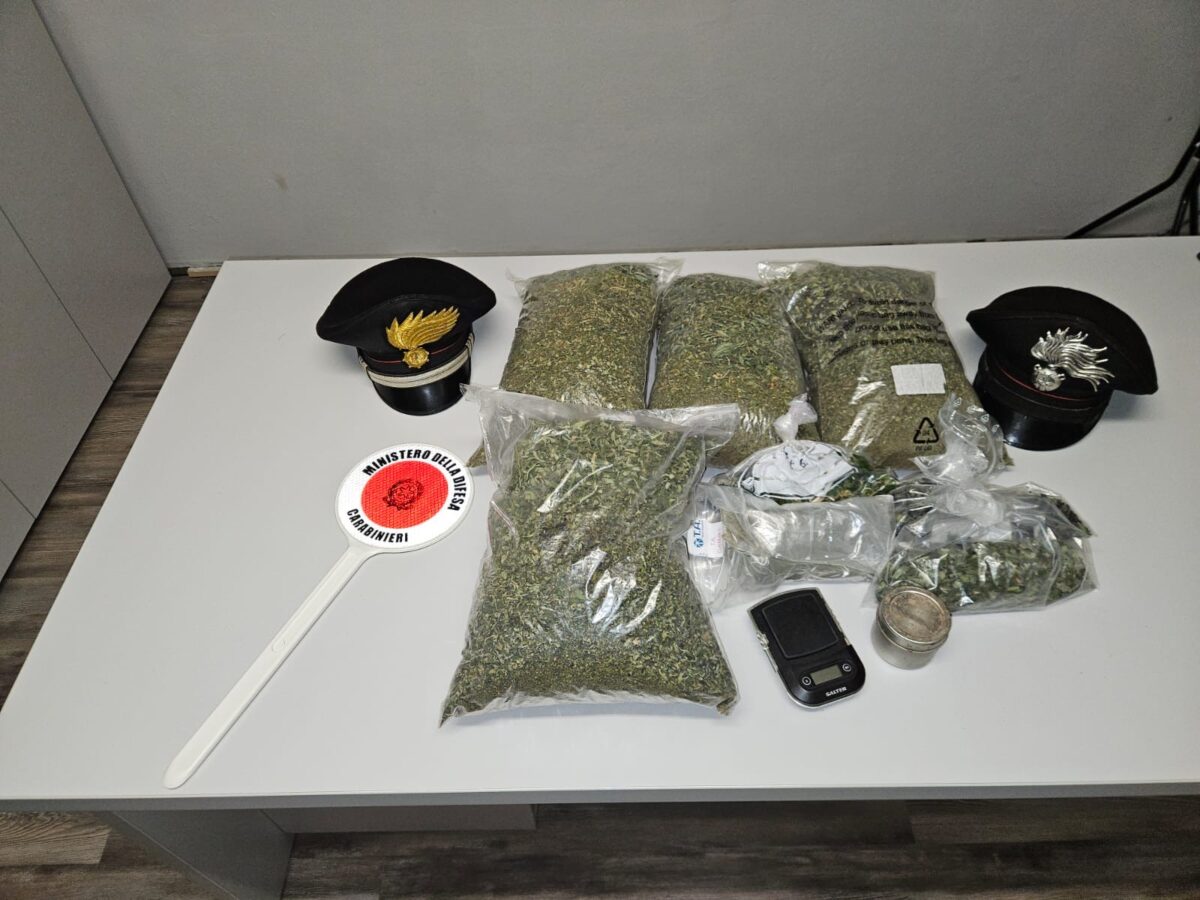Nel dettaglio sono stati rinvenuti e sottoposti a sequestro 13 contenitori in vetro (con complessivi 244 grammi di marijuana) e 10 buste in plastica contenenti 1.858 grammi della medesima sostanza.