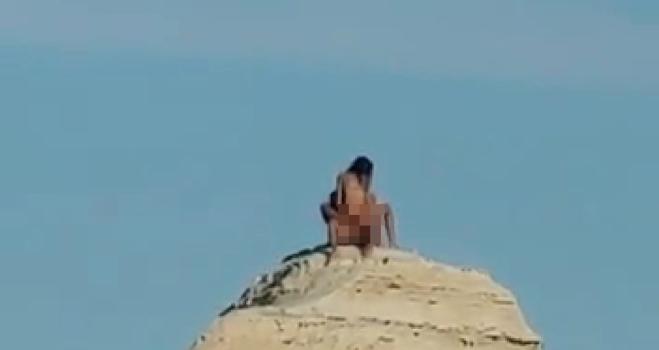 È accaduto a marina di Melendugno, Torre Sant’Andrea, in provincia di Lecce. I due sono saliti sul Tafaluro, lo scoglio più alto (meglio noto come la Sfinge del Salento) e totalmente incuranti di trovarsi sotto gli occhi di tutti hanno iniziato ad amoreggiare.