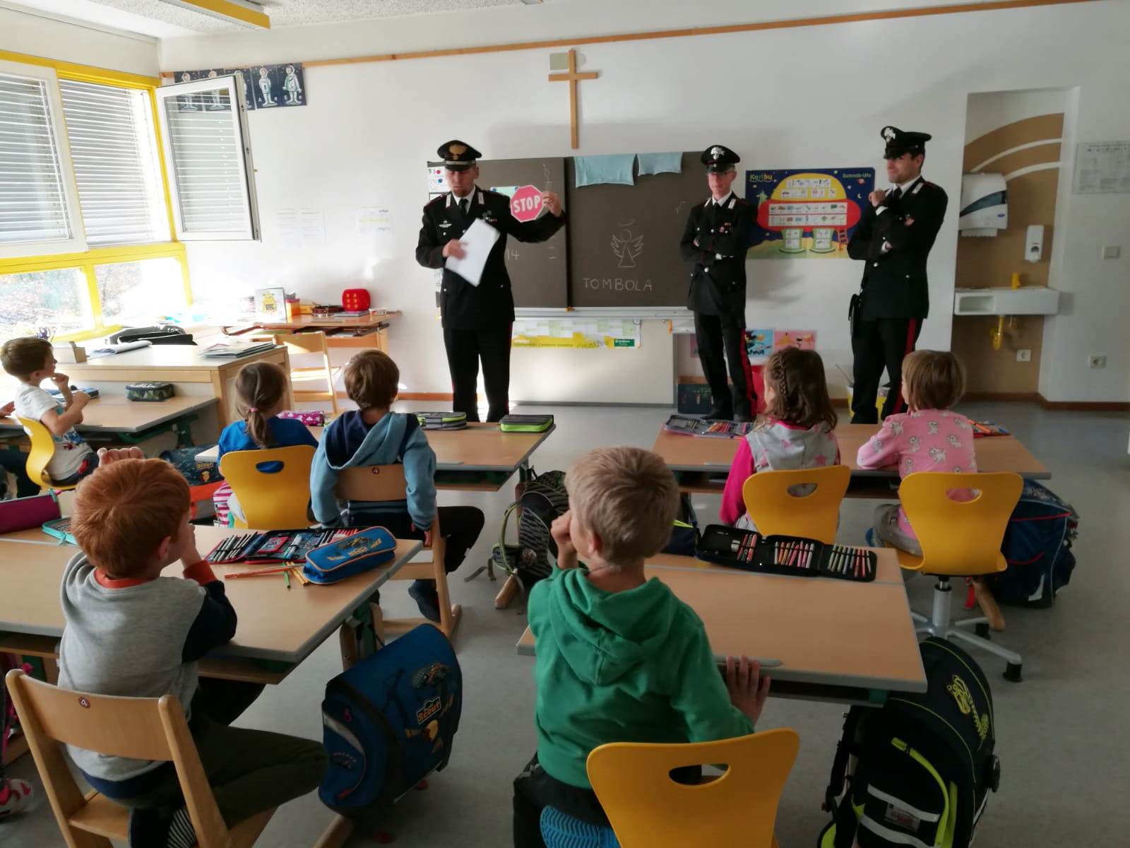 37 alunni delle cinque classi sono stati intrattenuti dal Maresciallo Christian Strickner, comandante della Stazione, che ha risposto alle tante curiosità dei bambini.